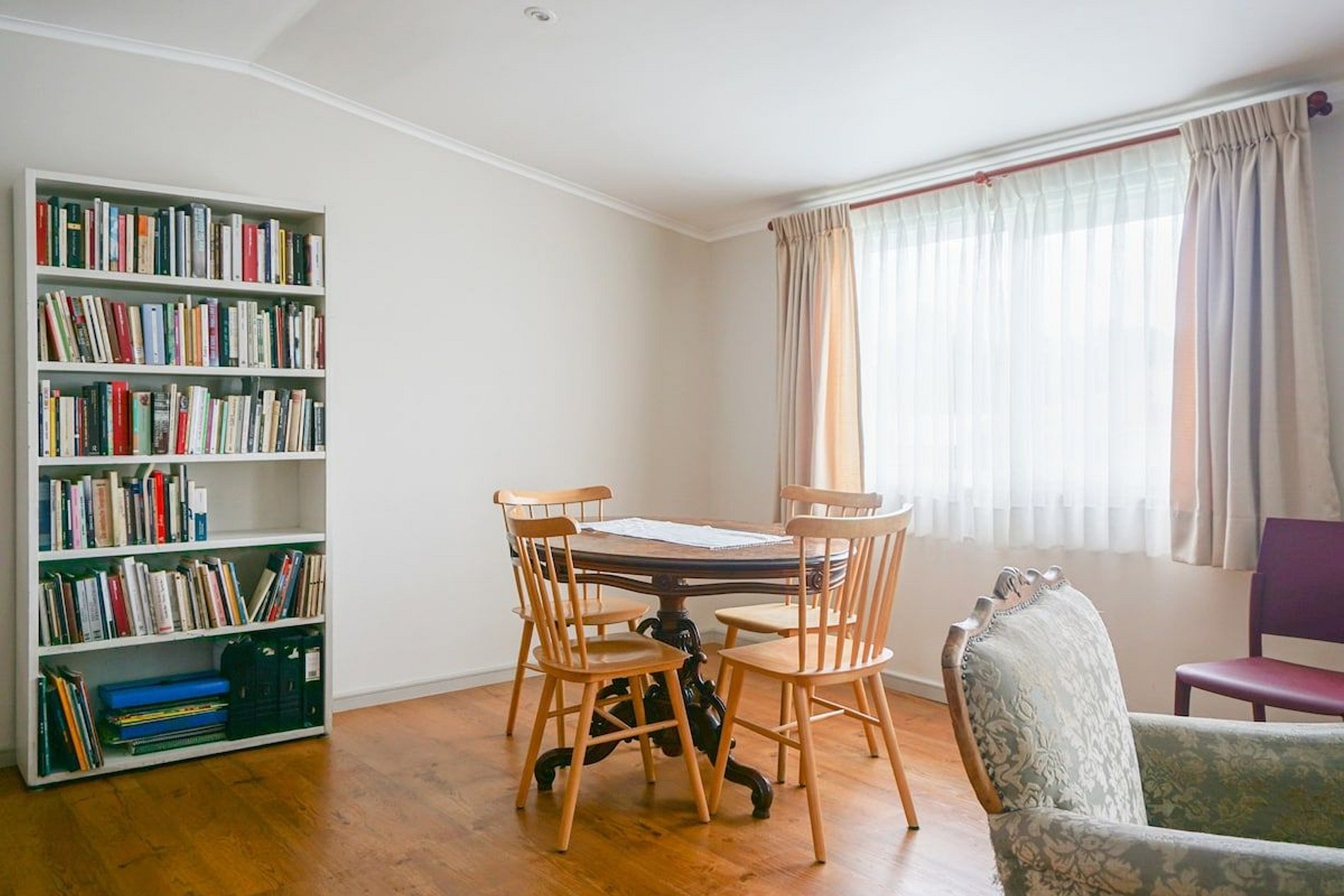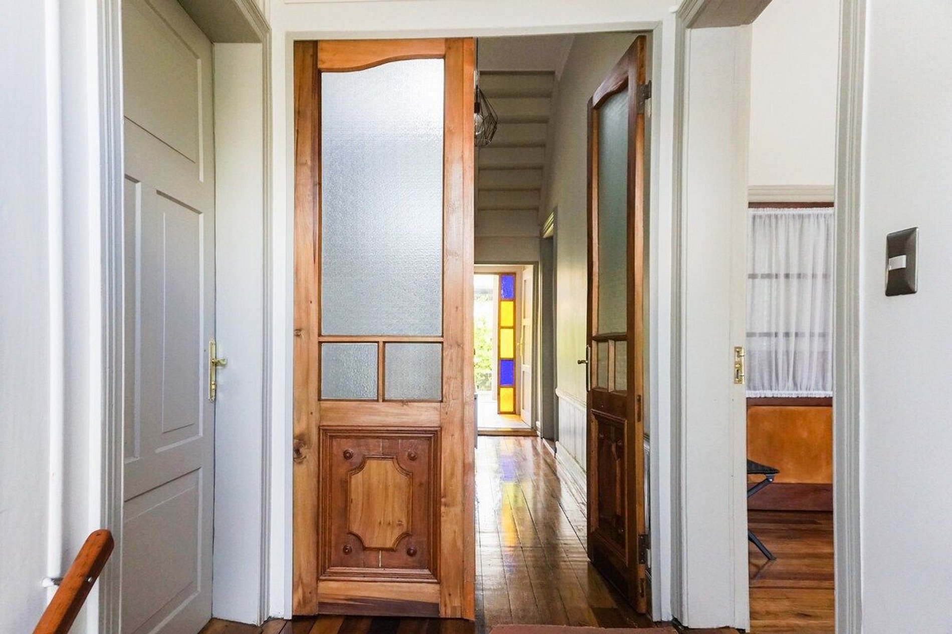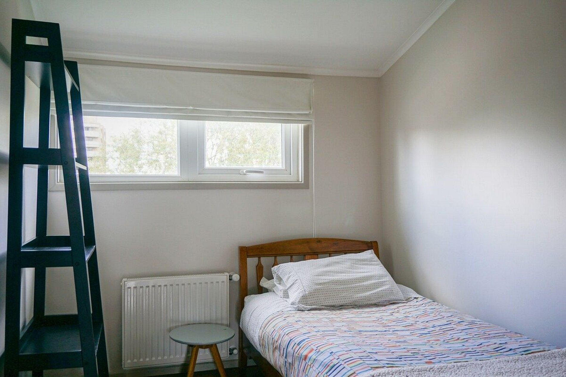 Acogedor y luminoso departamento de 2 habitaciones con cama matrimonial en una y cama individual en otra , tiene colchón inflable por si se necesita y son 4 personas, 1 baño y una cocina equipada con comedor. Hay espacios comunes en la casa como un área de escritorio y biblioteca, sala de meditación, jardines interiores con pérgola y pasillo con área de descanso, estacionamientos. El departamento queda dentro de una casa multifacética, con aire templado y con un estilo valdiviano muy propio.