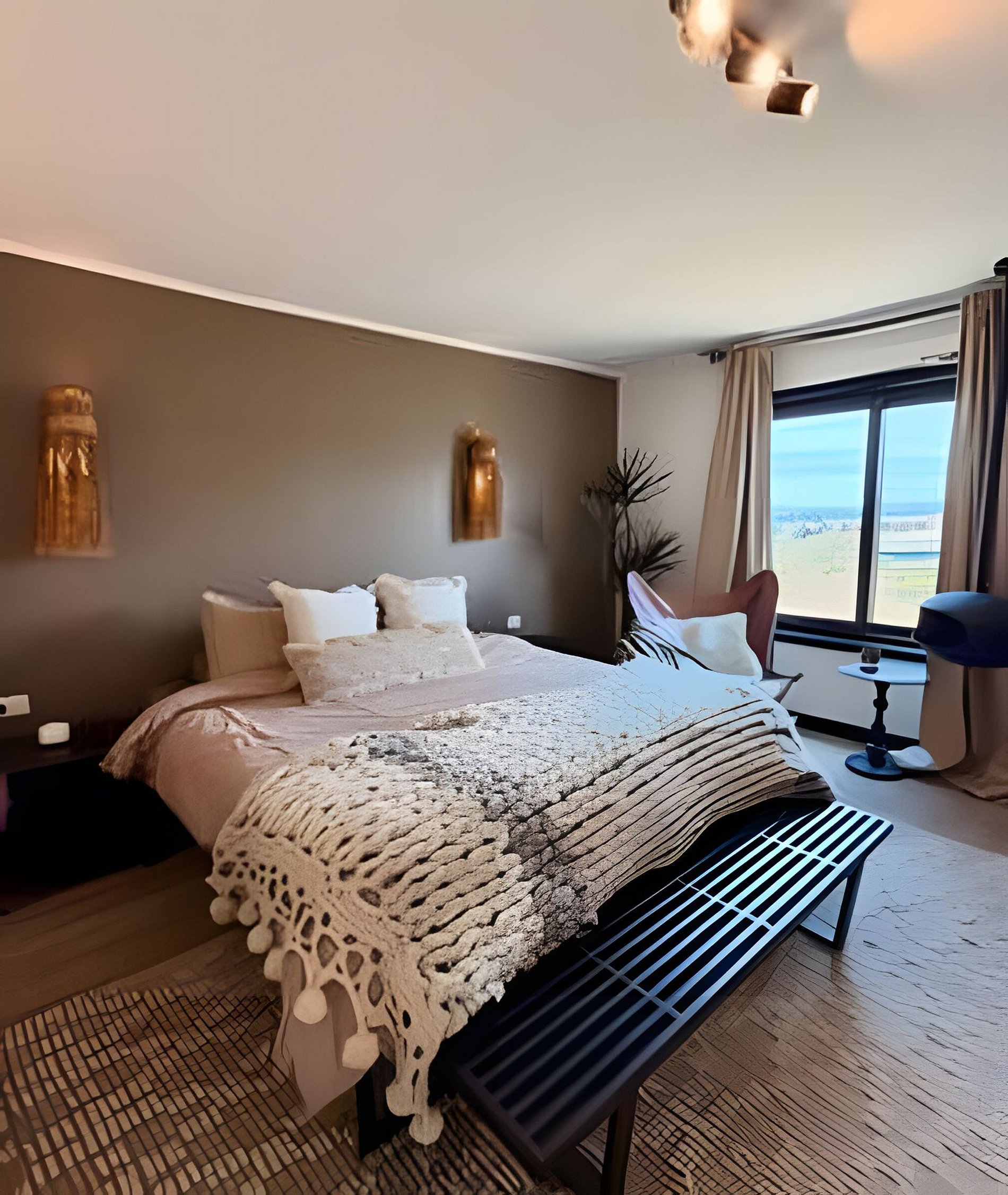 Exclusiva y preciosa casa de playa en condominio Costa Huanquen, ideal para grupo familiar o de amigos, especialmente pensada para conectar con la naturaleza, hasta 10 personas: tiene 4 habitaciones, 2 con cama matrimonial y cama individual, 1 con cama matrimonial de 2 plazas y 1 con cama King con baño en suite, amplio living comedor rodeado de un jardín interior, cocina con isla y logia con lavadora de ropa. El condominio tiene acceso a la playa por el humedal de Huaquen.