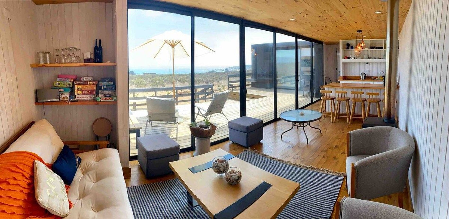 Preciosa casa en la costa, equipada y cómoda para familias. Moderna y espaciosa con arquitectura que privilegia la vista al mar. Posee 2 amplias suites: 1 matrimonial y la otra con 2 camarotes. Amplio living . Cómoda cocina comedor. Amplias terrazas con parrilla. Especial para paseos a la orilla del mar y humedal a 700 mts. Para Familias y amantes de la naturaleza y deportes náuticos.