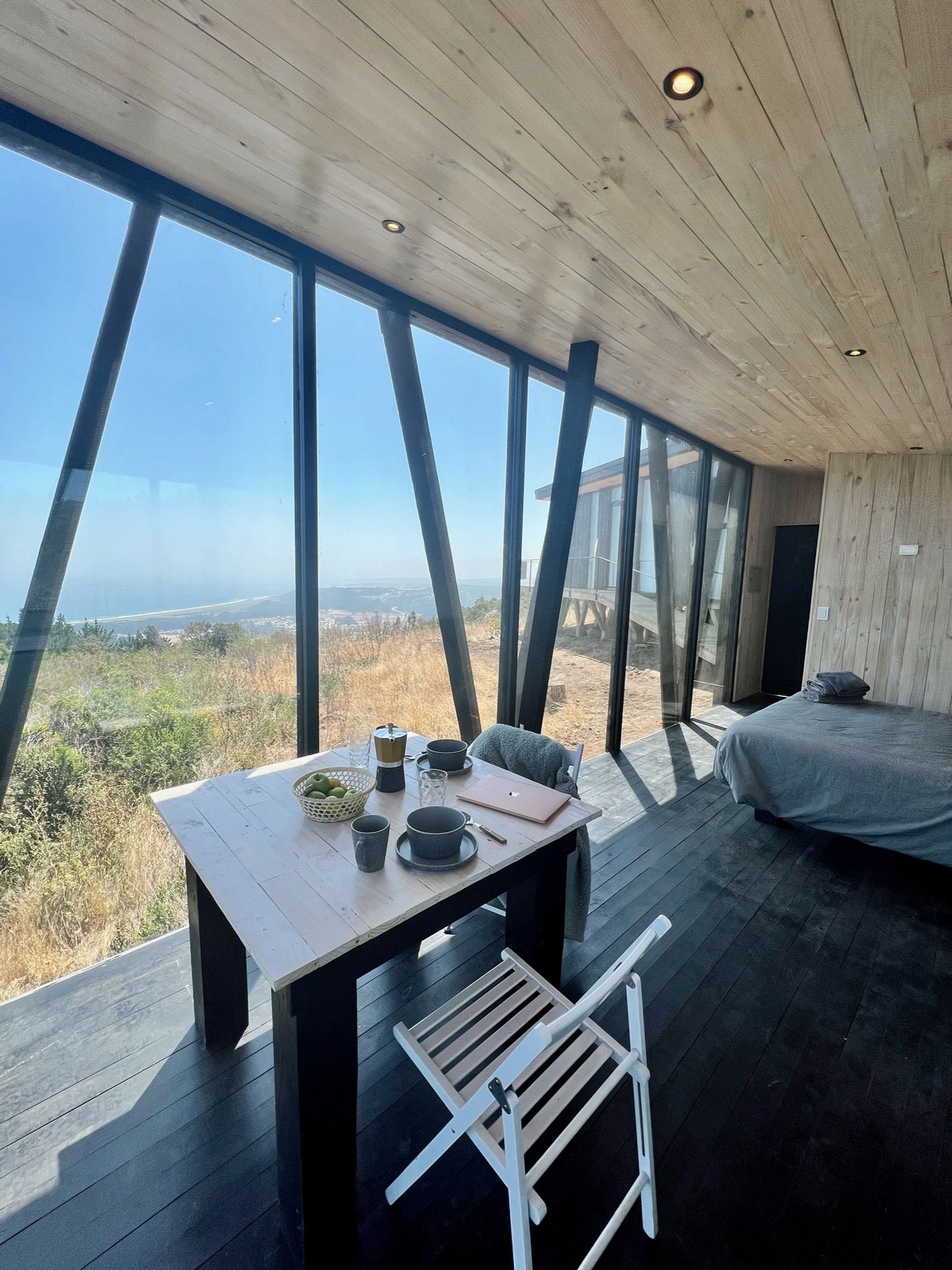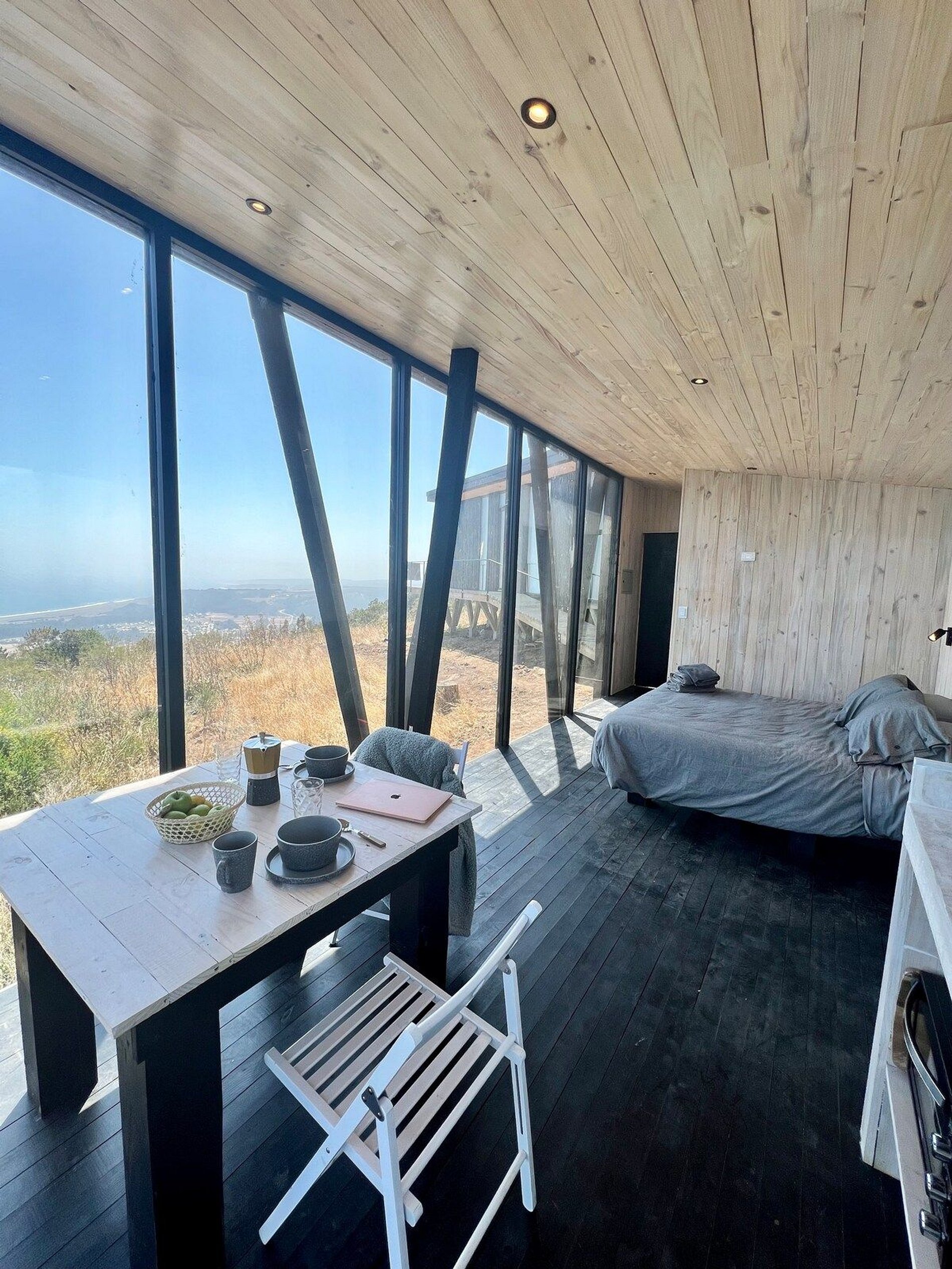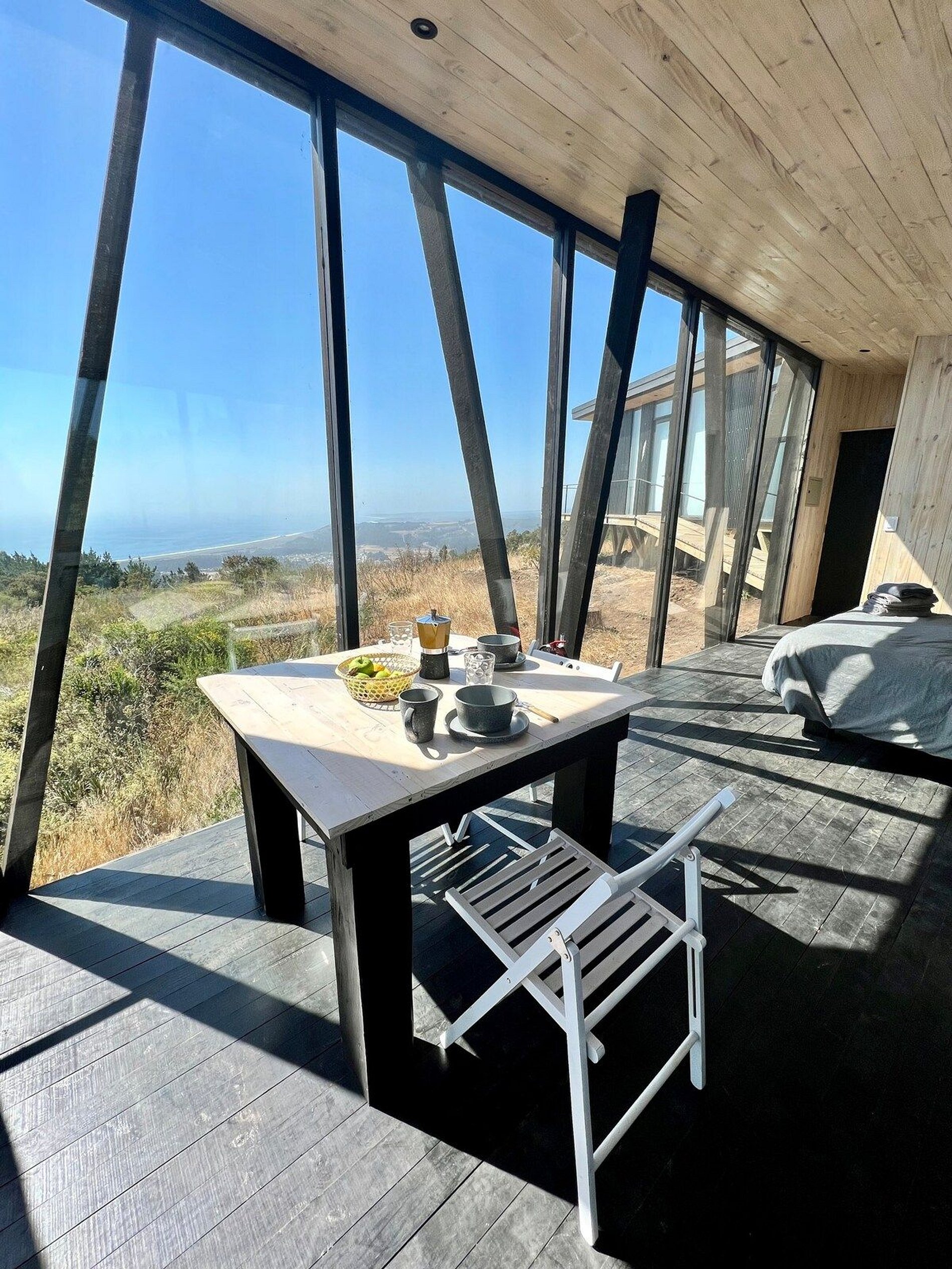 Cabaña ubicada en medio del bosque nativo , posee senderos de caminata privados y vistas privilegiadas al mar de Buchupureo. La cabaña está equipada para hasta 2 huéspedes, con sábanas, toallas y cocina completa. Sistema de calefacción con Bosca, posee wifi disponible en toda la casa e inmediaciones con antena Starlink, también tenemos un hot tub funcionando incluido en tu estadía, es con agendamiento de horario y dura 1 hora diaria su uso.