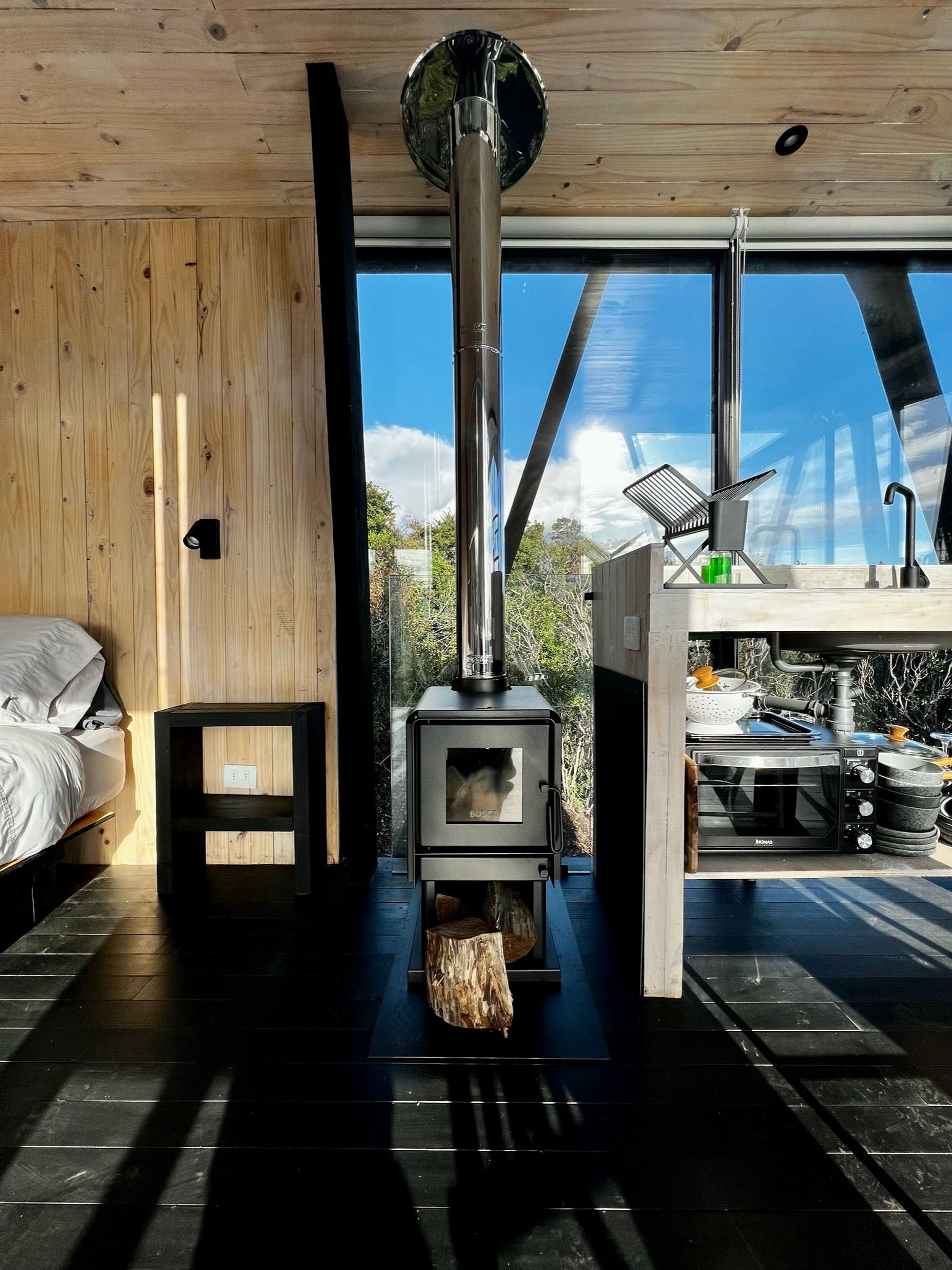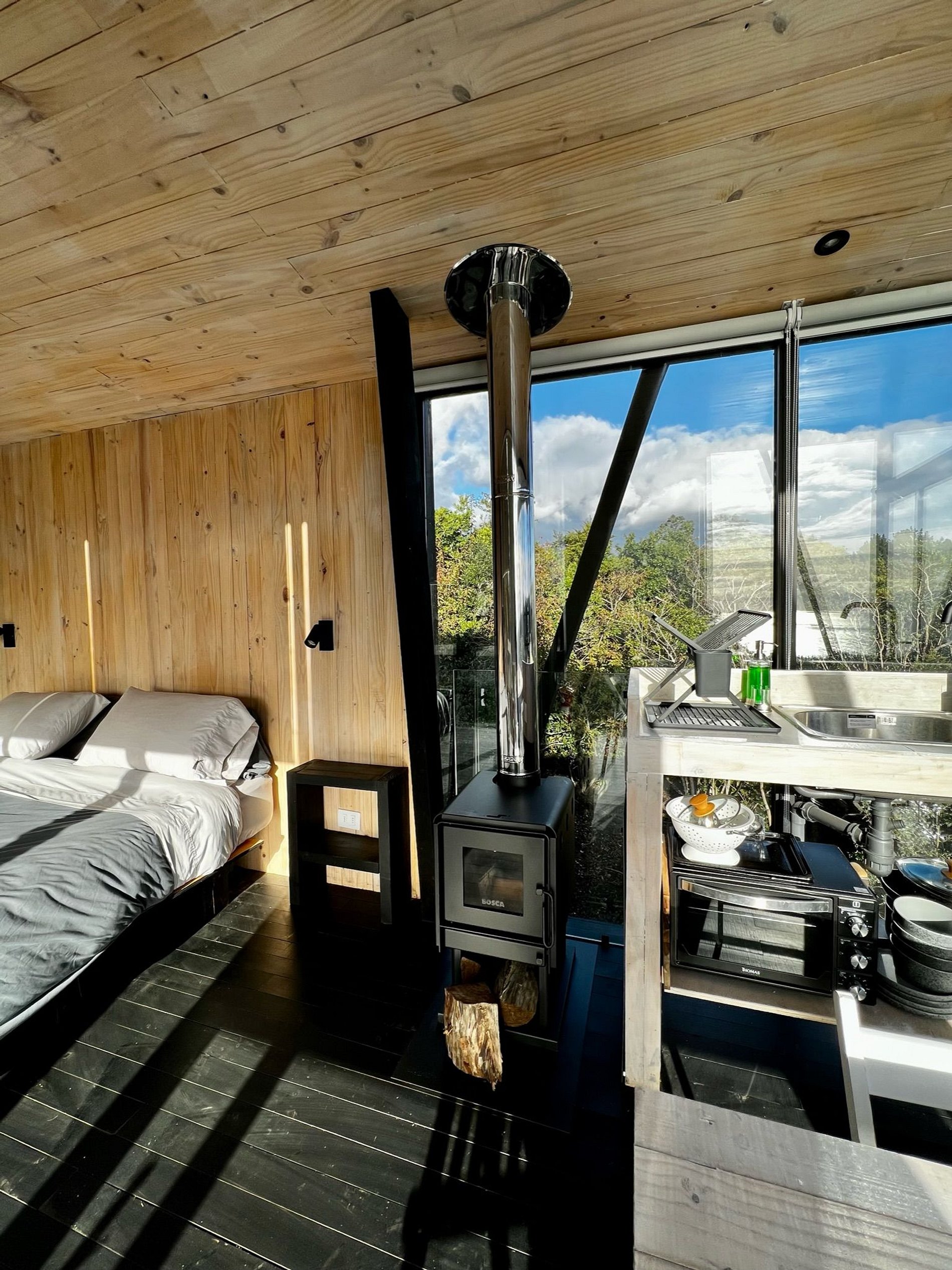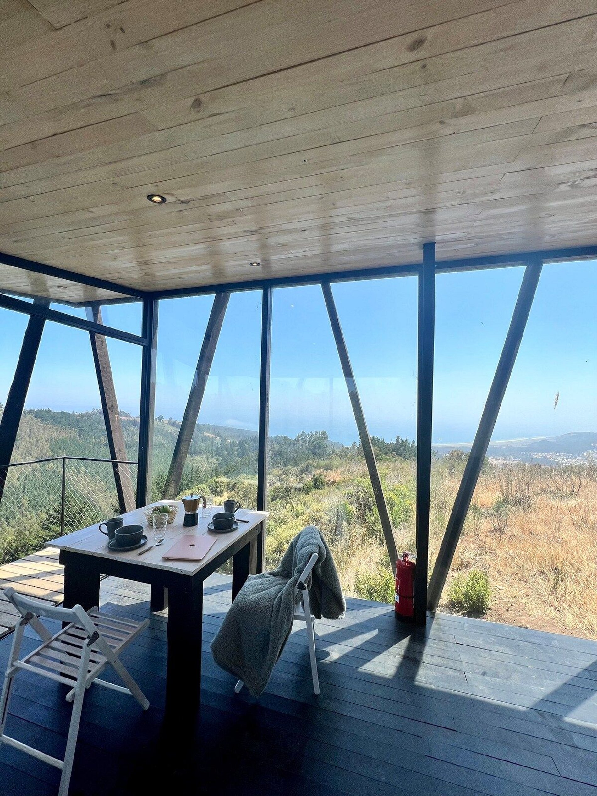 Cabaña ubicada en medio del bosque nativo , posee senderos de caminata privados y vistas privilegiadas al mar de Buchupureo. La cabaña está equipada para hasta 2 huéspedes, con sábanas, toallas y cocina completa. Sistema de calefacción con Bosca, posee wifi disponible en toda la casa e inmediaciones con antena Starlink, también tenemos un hot tub funcionando incluido en tu estadía, es con agendamiento de horario y dura 1 hora diaria su uso.