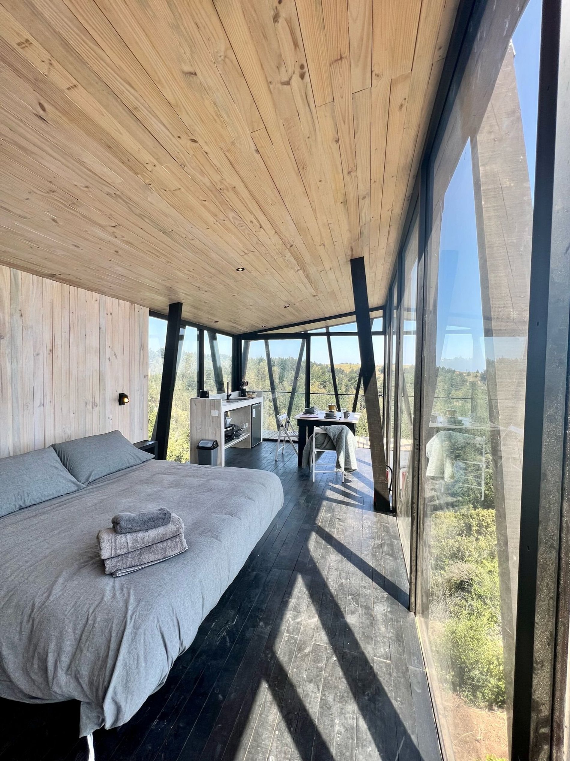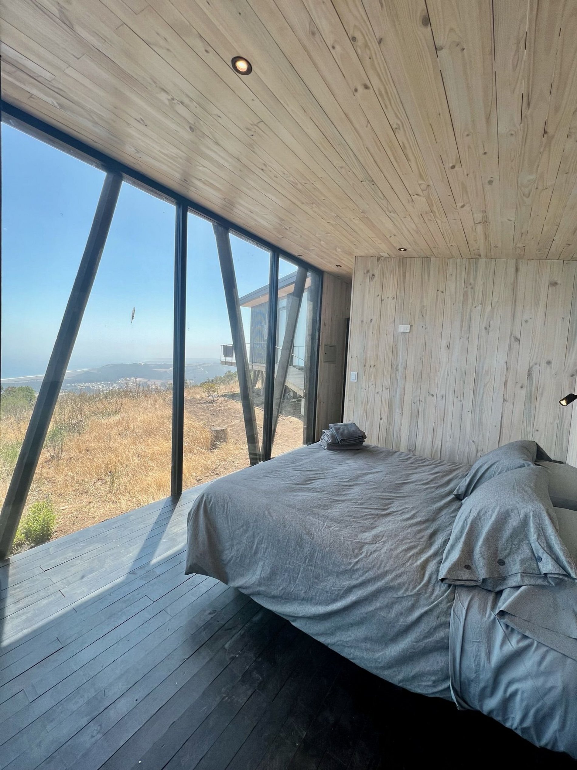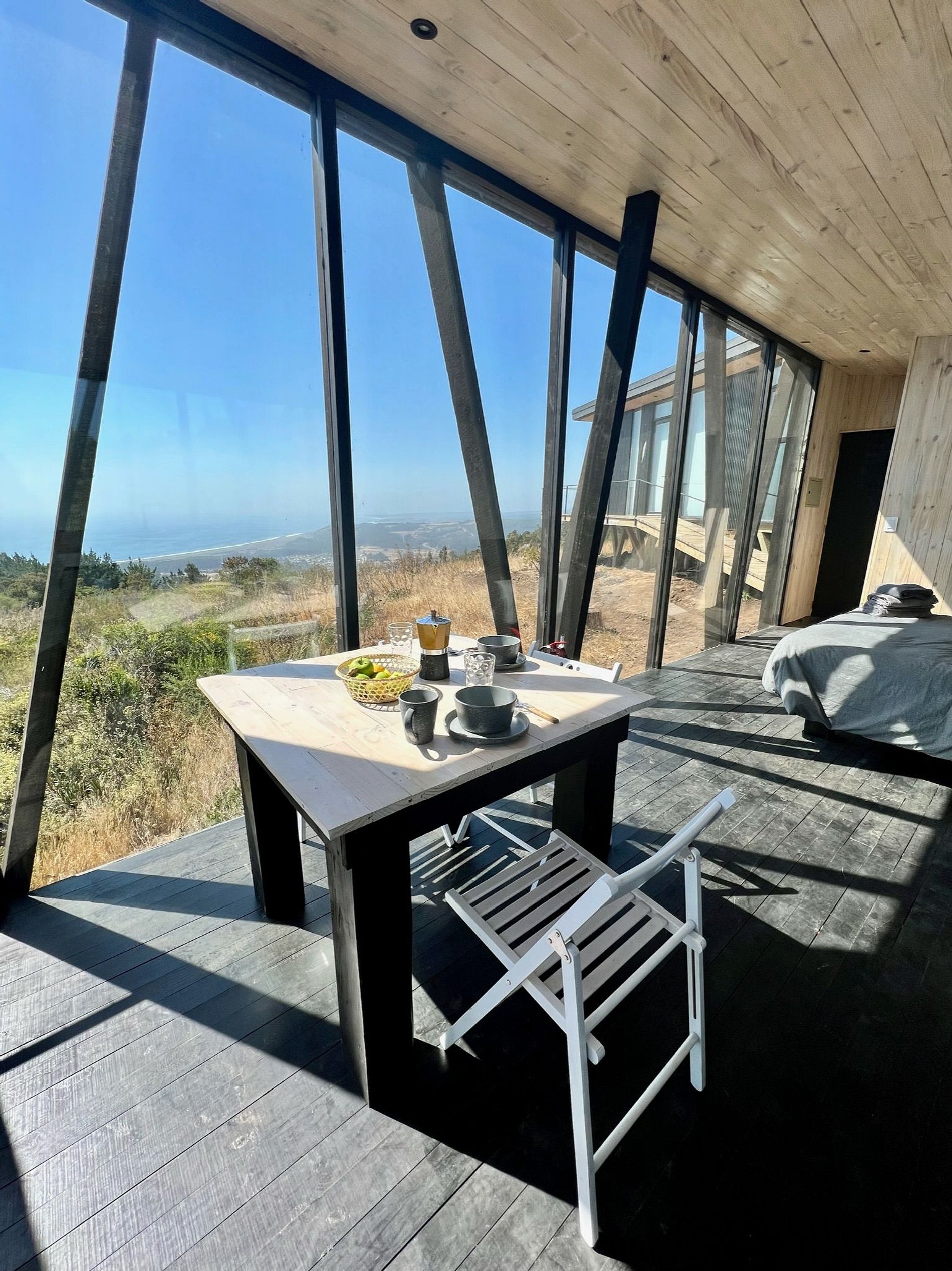 Cabaña moderna inmersa en bosque nativo del Ñuble costero, con vista a la ola de Buchupureo (8 km). Ideal para parejas o familia con un niño. Cuenta con cama king, cocina-comedor equipada, terraza y baño. Incluye estacionamiento, sábanas, toallas y WIFI Starlink.Tinaja gratuita 1 hora al día, viernes y sábado horario 16:00–19:00, con reserva. De domingo a Jueves con costo adicional de $25.000 con reserva y sujeta a disponibilidad. Disfruta un entorno natural perfecto para descansar y compartir.