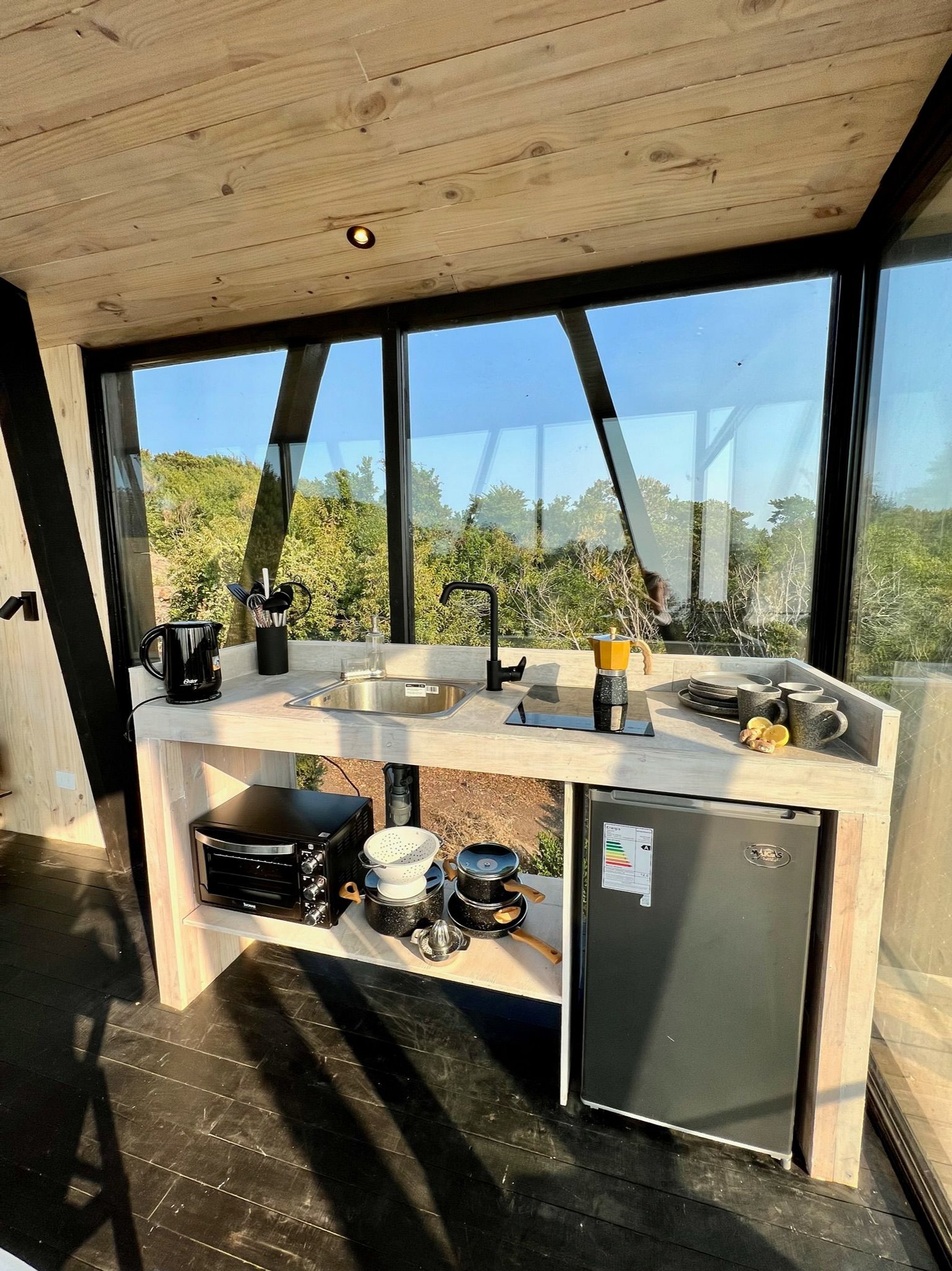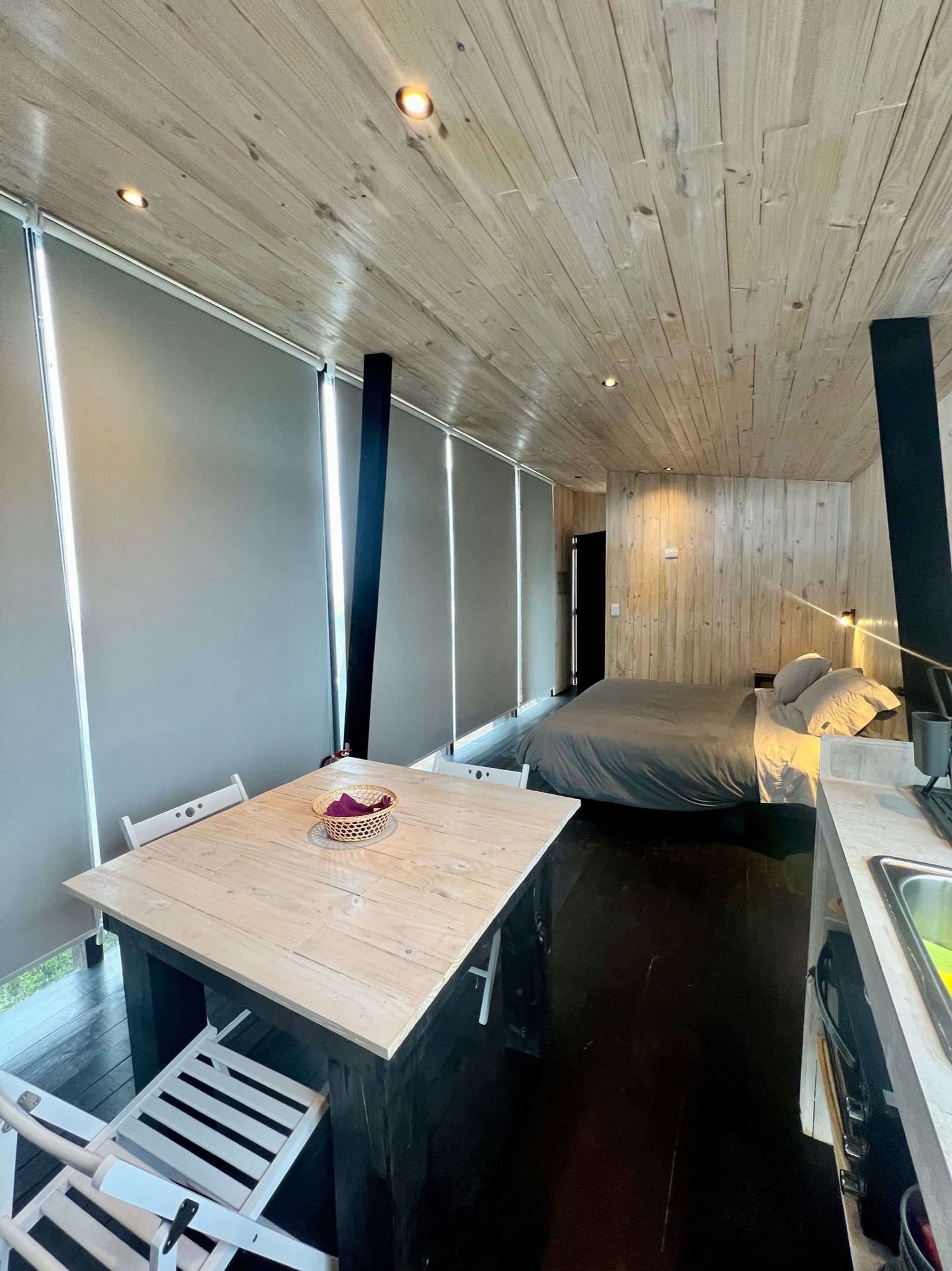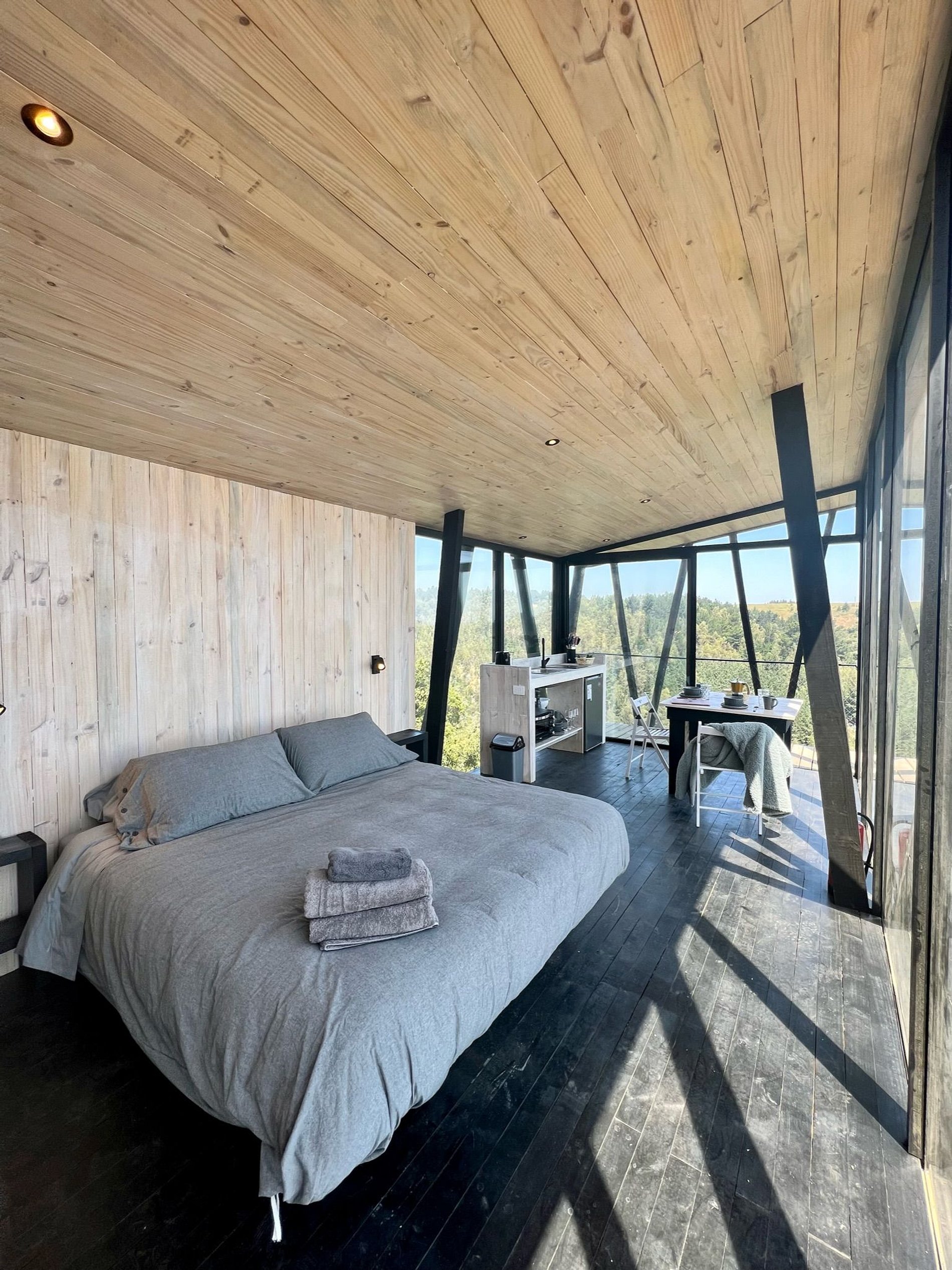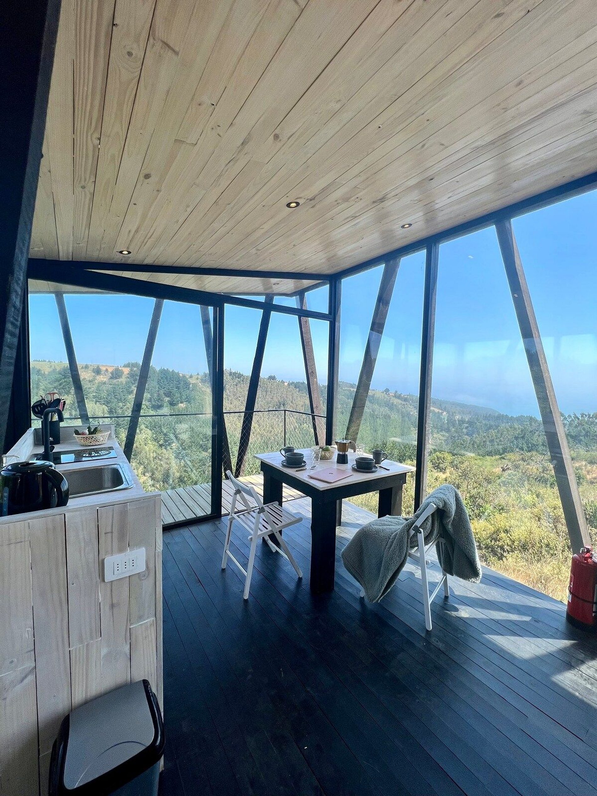 Cabaña moderna inmersa en bosque nativo del Ñuble costero, con vista a la ola de Buchupureo (8 km). Ideal para parejas o familia con un niño. Cuenta con cama king, cocina-comedor equipada, terraza y baño. Incluye estacionamiento, sábanas, toallas y WIFI Starlink.Tinaja gratuita 1 hora al día, viernes y sábado horario 16:00–19:00, con reserva. De domingo a Jueves con costo adicional de $25.000 con reserva y sujeta a disponibilidad. Disfruta un entorno natural perfecto para descansar y compartir.