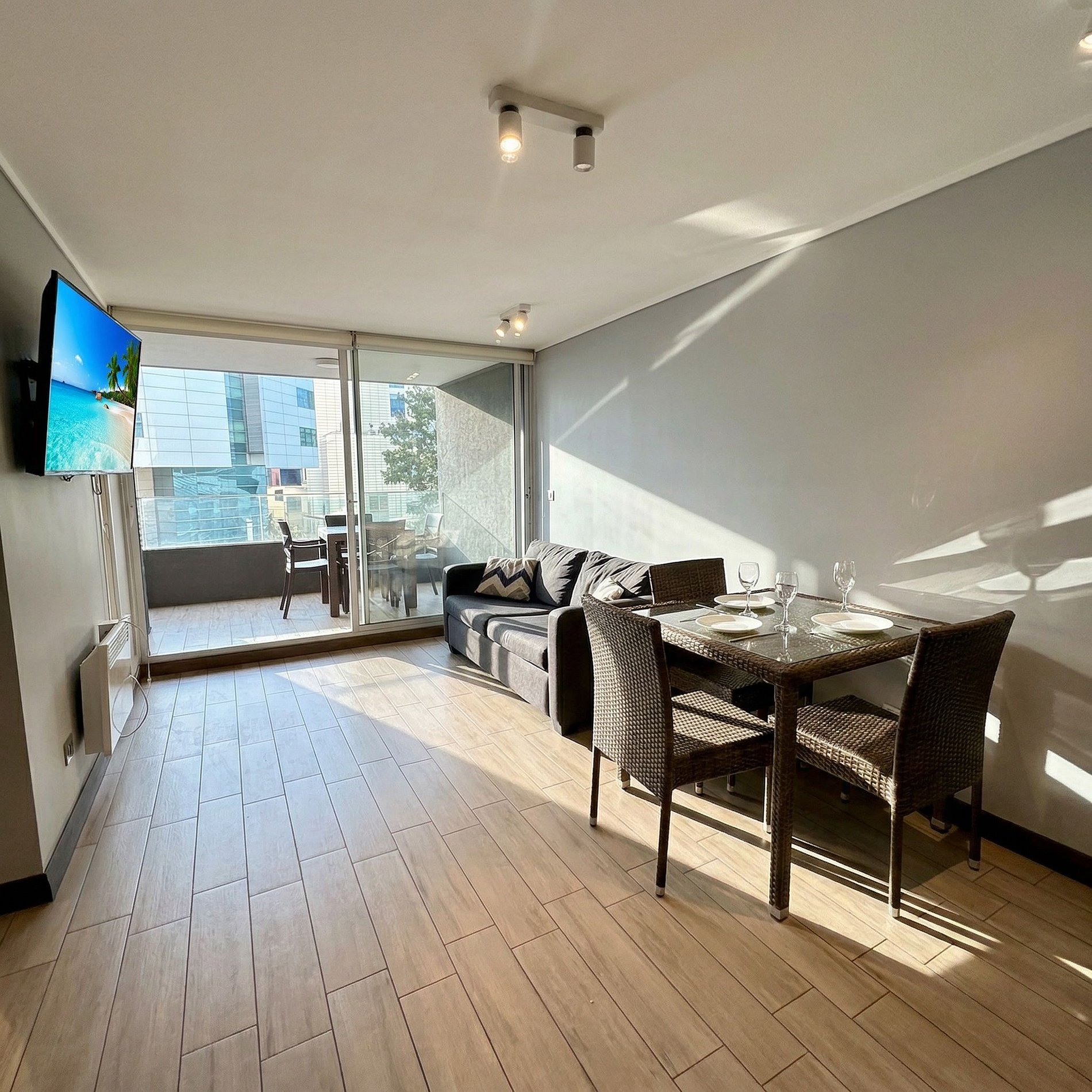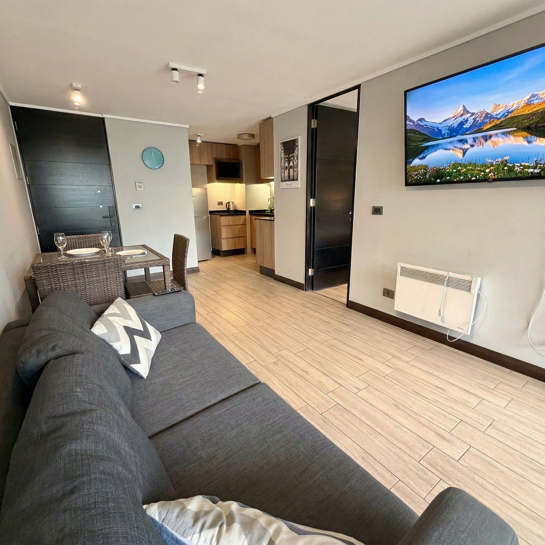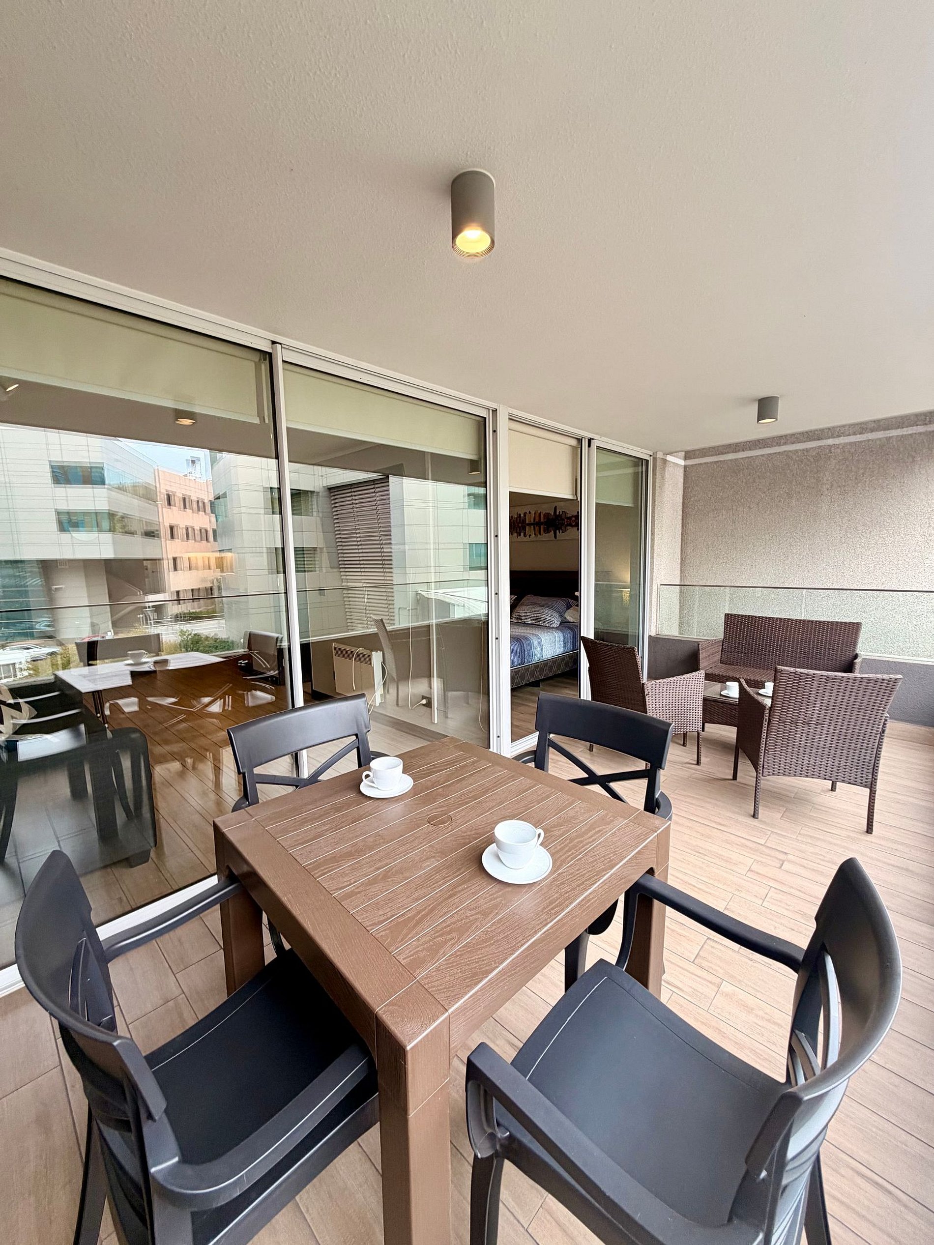 A modern, comfortable flat with private parking, a king-size bed, and fast Wi-Fi—ideal for relaxing or remote work. Enjoy a terrace and well-organized rooms for maximum comfort. Located in Estoril, near Clínica Las Condes and supermarkets, with convenient access to ski resorts.
