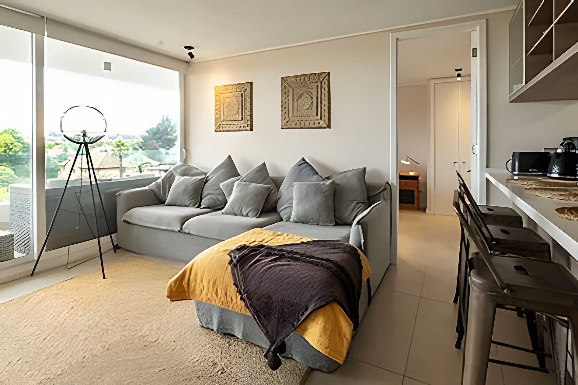 Acogedor y cómodo departamento de 2 de dormitorios y 2 baños en Condominio Montemar, Con Con, detalladamente decorado. El departamento cuenta con cocina equipada para 4 personas, sábanas y toallas, lavadora dentro del departamento y estacionamiento propio. El edificio tiene piscina privada. Muy próximo a playas de Con Con