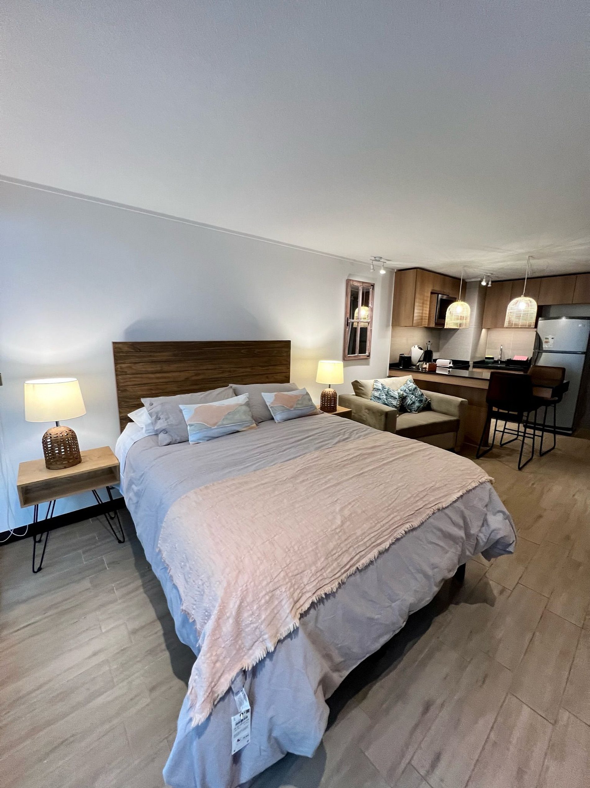 Te alojarás en un espacio acogedor y eficiente, diseñado para aprovechar cada ambiente. Cuenta con cama de 2 plazas, escritorio para trabajar y terraza para relajarte. El wifi de alta velocidad permite mantenerte conectado sin interrupciones durante toda tu estadía.